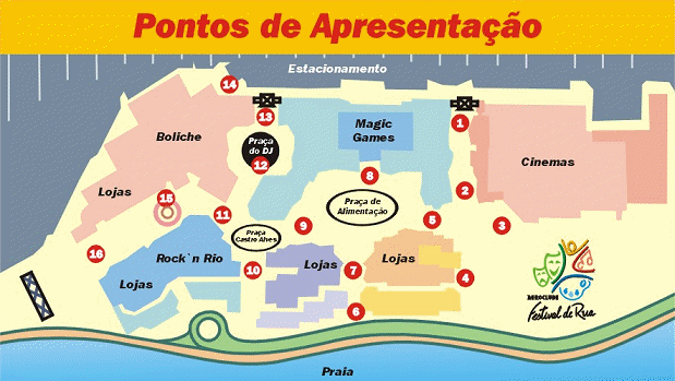 mapa dos pontos de apresentação no Aeroclube Plaza Show: